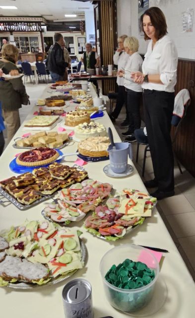 Die Damengruppe des „Freischütz“ Wathlingen hatte wieder zu ihrem jährlichen Herbstkaffee ins Schützenhaus geladen. Herbstlich geschmückt, wartete ein umfangreiches Kuchenbüfett auf die Gäste, aber auch etwas Herzhaftes war im Angebot. 20 Torten und belegte Brote waren vorbereitet und beides fand guten Zuspruch. Schnell lichteten sich die Platten. Unsere 2. Damenleiterin Vera hatte wieder keine Mühen gescheut und zahlreiche Preise für die Tombola zusammengetragen, jedes Los war ein Gewinn. Ein kleiner Basar war ebenfalls wieder von den Damen zusammengestellt worden. Gebasteltes, Eingewecktes, Gestricktes und Gebackenes stand zum Verkauf. Einen großen Dank an alle Helfer und Helferinnen, in der Vorbereitung, beim Herrichten des Schützenhauses, am Tag der Durchführung, beim anschließenden Aufräumen des Schützenhauses, bei den Kuchenbäcker/Innen, der Kaltmamsell, bei den Spendern der Blumendeko und den Spendern der Tombolapreise.