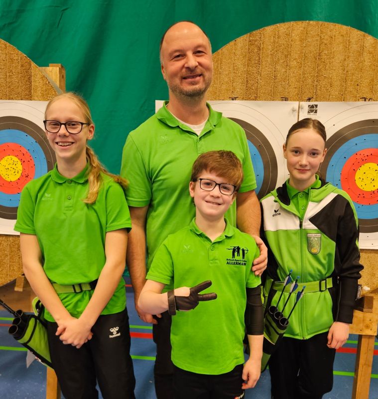 Nach dem erfolgreichen Abschneiden bei der Kreismeisterschaft mit dem Blankbogen, hatten sich 3 Schüler/innen und ein Jugendlicher für den Start bei der Landesmeisterschaft in Schwarmstedt qualifiziert.