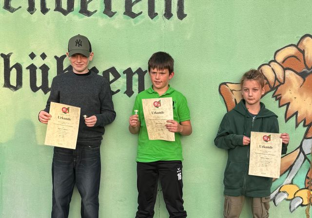 Einzig Felix Schulz hatte schon mit dem Blasrohr an der diesjährigen Meisterschaftsrunde teilgenommen und sich sogar für die Deutschen Meisterschaften qualifiziert, die im November stattfinden werden. Nun wollte er sich auch mit dem Lichtpunktgewehr beweisen. Und es sollte klappen. In seiner Altersklasse Schüler III m belegte er den 1. Platz mit 188, 0 Ring, die in Zehntelwertung gemessen wurden. Erik belegte Platz 9, Leonid Platz 4, Eliah Platz 7 und Leah-Marie Platz 9, in ihren jeweiligen Altersklassen. Alle Teilnehmenden erhielten eine Urkunde und die Erstplatzierten bekamen noch eine Anstecknadel überreicht.