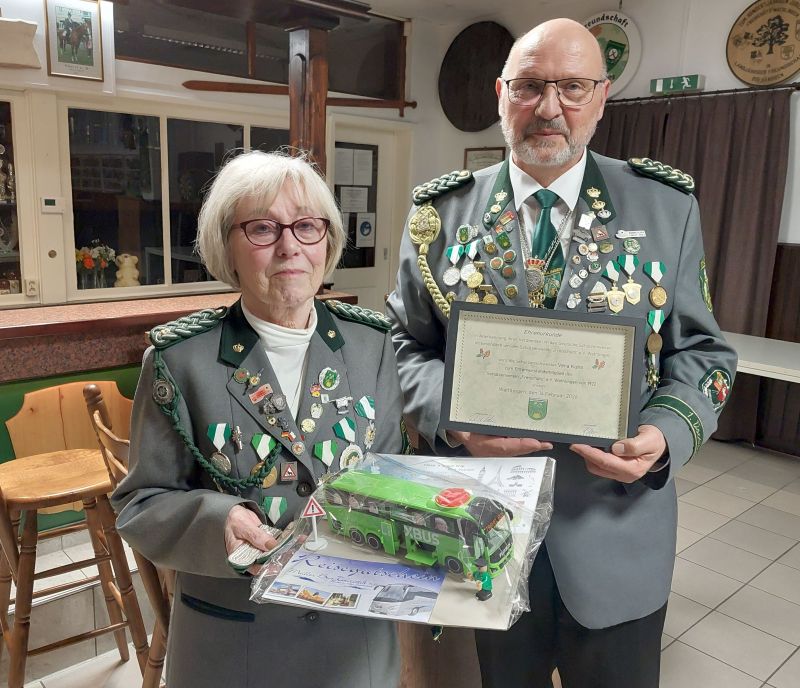 Nach ihrem Ausscheiden aus der aktiven Vorstandsarbeit wurde Vera Kühn zum Ehrenvorstandsmitglied ernannt. Der 1. Vorsitzende Erhard Oehns bedankte sich für ihre langjährige, konstruktive Mitarbeit im Vorstand und ihren so vielfältigen aktiven Einsatz auch in anderen Belangen des Vereinslebens und überreichte ihr ein kleines Abschiedspräsent.